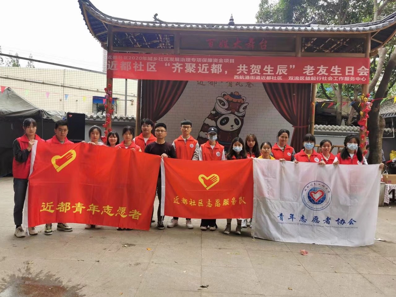 成都信息工程大学青年志愿者协会控制分会的志愿者们于4月22日中午在校门口乘坐公共交通工具抵达双流区西航港街道西航港近都社区,走进社区开展为老人庆生的活动,传递自己的爱心。