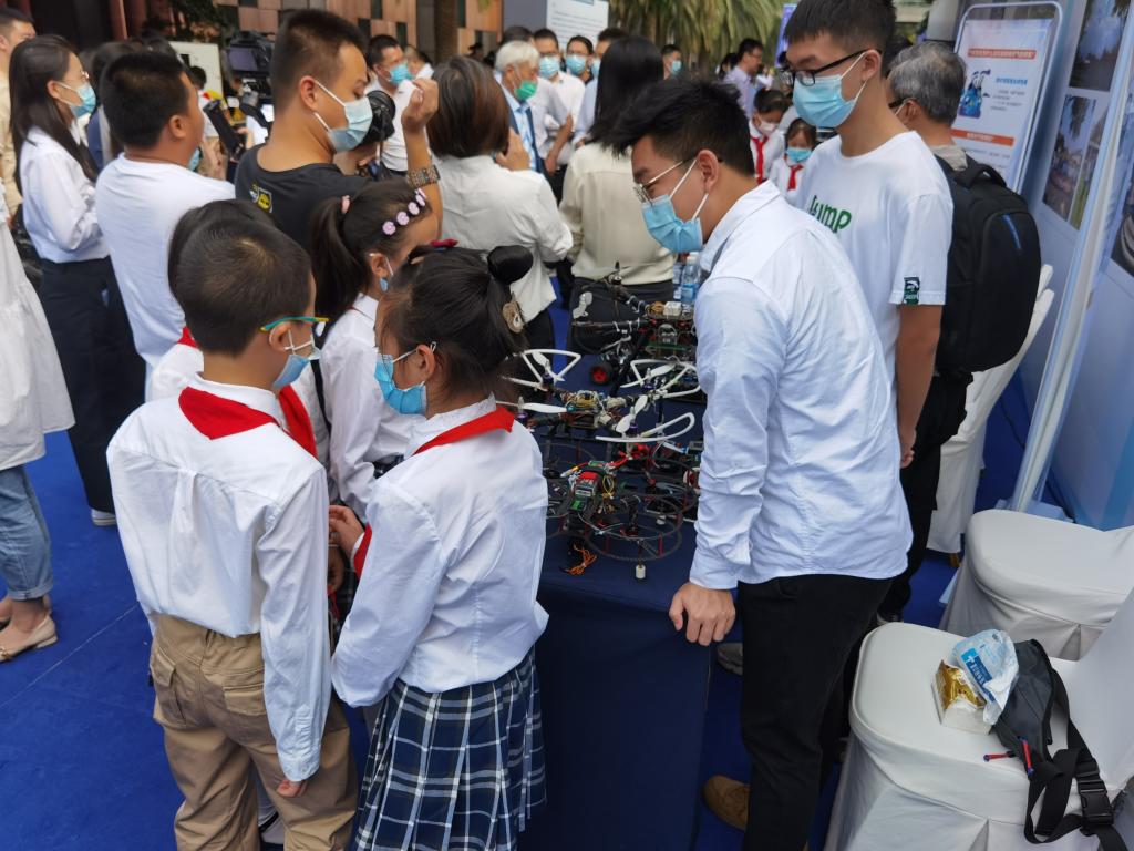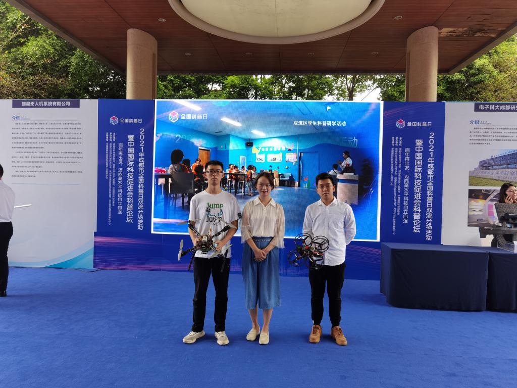 控制工程学院机器人协会同学和分团委书记田媛老师代表成信大智能机器人创客科普教育基地参与本次活动,向本次参与活动的嘉宾展示学院科普优秀作品,包括四旋翼无人机、飞思卡尔智能车。