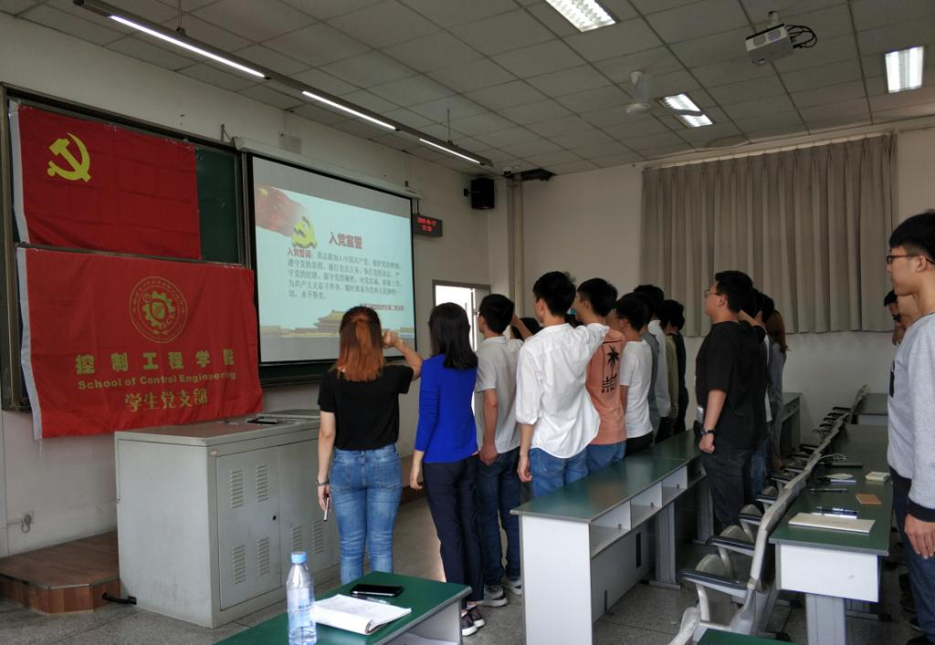 控制工程学院党支部副书记张勇、学生第一党支部书记赵玮、第二党支部书记贾丽参加了活动,并对学生党员提出了几点要求:一是要牢记党员身份,强化党员意识,以更加饱满的热情、更加优异的成绩践行对党的庄严承诺;二是要明确重温入党誓词的意义,不论是入党时宣誓还是重温入党誓词,其意义均在于将誓词精神融入到日常的工作生活学习之中,不忘初心,牢记使命;三是要不断学习党员道德修养与行为准则,加强对党的认识,提高党性修养。