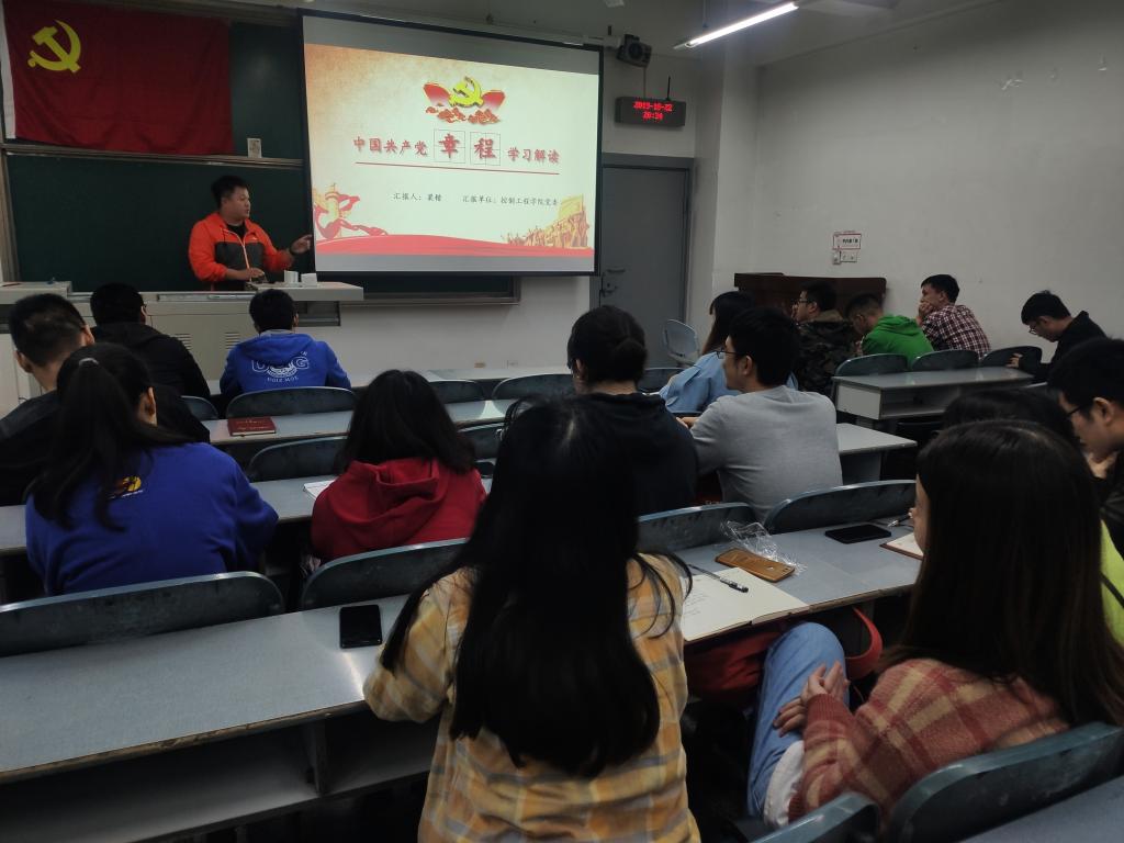 观看完《榜样4》后,学院党委委员、学生第一支部书记梁楷同志给学生第一支部全体党员讲党课,主题为“学习党章党规,做新时代高校合格党员”