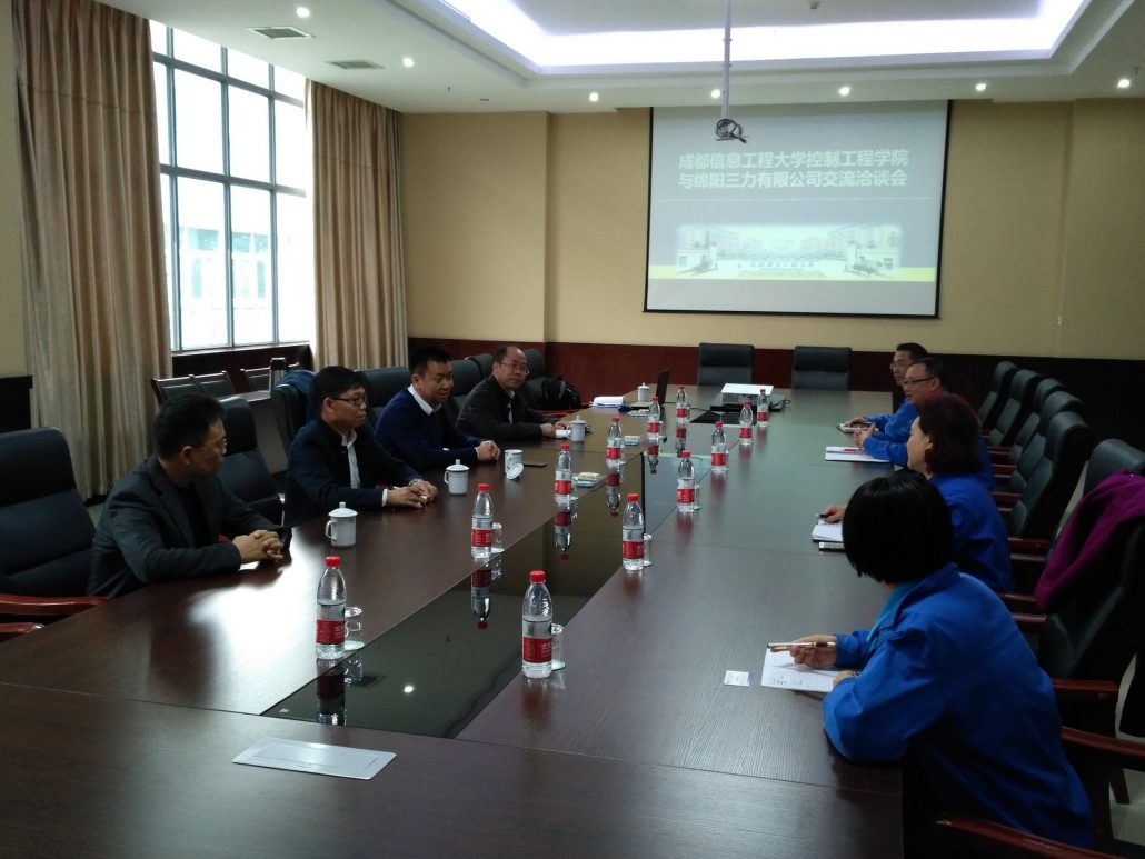 11月16日,控制工程学院院长蒋涛、测控教研室主任蒋世奇和电气实验室主任刘兴茂等一行5人赴绵阳三力股份有限公司考察交流并进行座谈。座谈会由绵阳三力股份有限公司总经理税建敏主持,董事任丽君和技术中心主任杨洪斌等人员参加。
