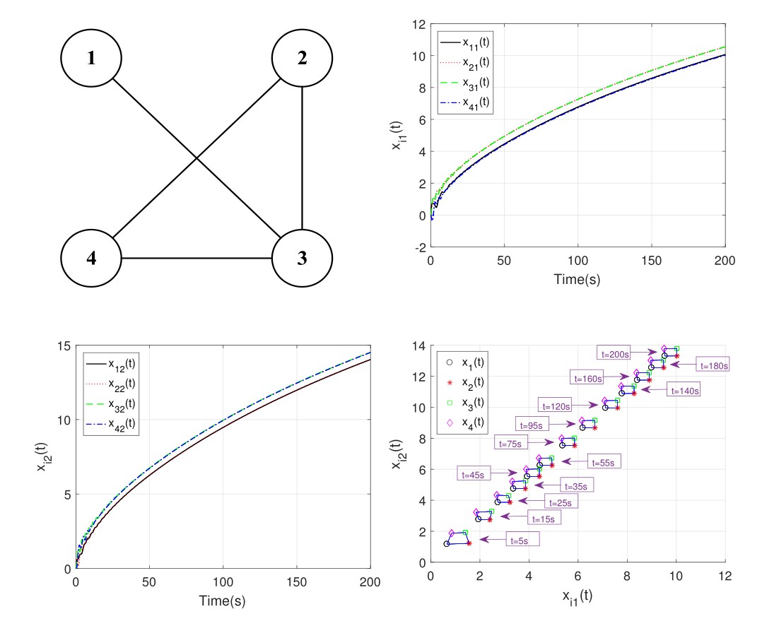 具有非均匀时滞的分数阶多智能体系统一致性及编队控制示意图