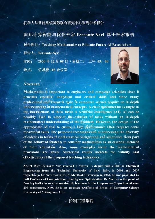国际计算智能与优化专家 Ferrante Neri 博士学术报告