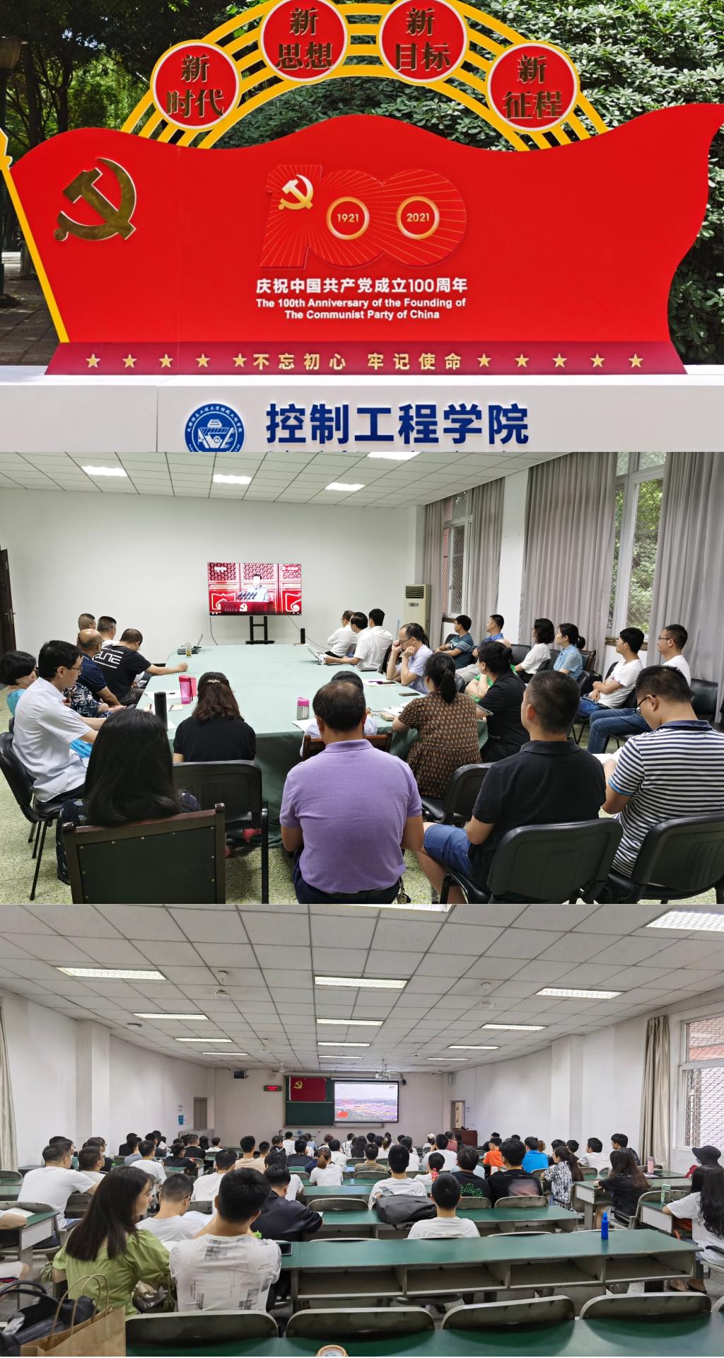 2021年7月1日上午八点整,中国共产党建党100周年庆祝大会在天安门广场隆重举行。控制工程学院组织全院师生分别在信息楼108会议室、2105教室观看了大会直播。