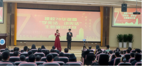 为庆祝我校建校70周年华诞,讲述成信故事、传播成信声音,同时深入贯彻落实习近平总书记关于宪法学习宣传教育的系列重要指示精神,进一步推进师生深入了解宪法、尊崇宪法,弘扬宪法精神,增强法治观念,由成都信息工程大学70周年校庆工作办公室主办、控制工程学院承办的庆祝建校70华诞暨“学宪法、讲宪法”主题演讲比赛在2021年10月14日在国际会议厅举行,并由网络直播平台现场直播本次比赛。