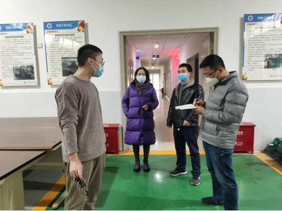 根据学校《关于做好2023年寒假前安全工作的通知》要求,也为进一步加强学院安全管理工作,消除安全隐患,1月10日上午,学院党委书记胡雪飞带队对学院各实验室和办公区开展了安全检查,副书记张勇、副院长刘鹏参与检查,各系实验室主任、金工实验室主任、党政办主任、实验室管理人员陪同检查。