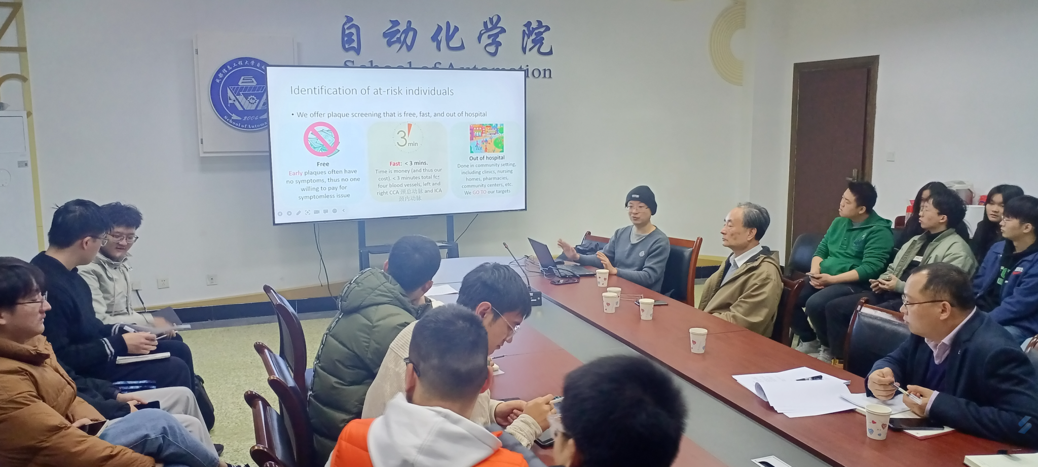 Prof. Dong C. Liu’ lecture introduced an interdisciplinary research area around the theme "Diagnosis of NAFLD and related CVD with Medical Ultrasound". By use of medical ultrasound for the diagnosis of non-alcoholic fatty liver disease (NAFLD) and related cardiovascular diseases (CVD), Prof. Liu first analyzed the relationship between NAFLD and CVD from the perspective of pathological factors, and studied the clinical acoustic characteristics of patients with NAFLD and CVD. Then, the CEUS for NASH and the SWE/ARFI feature extraction and algorithm for liver fibrosis diagnosis were demonstrated to the teachers and student.