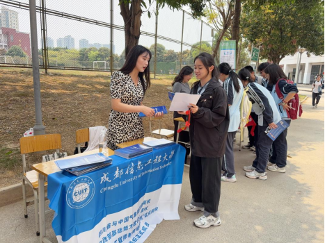 授牌仪式后,学院面向高三学生开展招生宣讲会。秦宗静老师结合最新招生政策,从专业设置、师资力量、就业前景、校园文化等方面全面解读成都信息工程大学的办学优势。宣讲现场气氛热烈,学生踊跃提问,围绕专业选择、竞赛培养、升学规划等话题与学院教师展开互动。