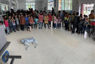 在道孚县甲斯孔乡,科普团队展示了我国自主研发的智能机器人和四足机器狗。孩子们在老师的指导下,通过语音指令操控机器狗完成行走、避障等动作,并参与编程小游戏,亲手为机器人设计简单指令。同时用简单易懂的方式向学生讲解传感器、电机控制等核心技术,帮助青少年理解智能设备的运作原理。