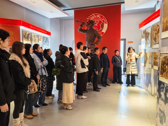 成都战役馆是四川省国防教育基地,馆内通过文物、图片、场景复原等方式,全面展示了1949年成都战役的历史全貌。在讲解员带领下,通过文物史料与多媒体展陈,师生们系统学习了解放军解放成都地区的军事部署,了解了成都战役的历史背景与战略意义。在纪念馆广场誓词墙前,全体党员高举右拳重温入党誓词,铿锵誓言回荡在陵园上空;随后,师生们参加缅怀仪式,向烈士敬献鲜花。
