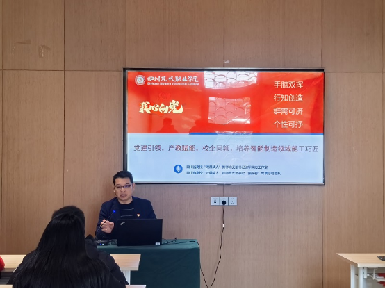 党课结束后,两院围绕“党建与业务融合”开展经验交流。四川现代职业技术学院智能制造学院“双带头人”徐平同志党支部书记工作室以《党建引领,产教赋能,校企同频,培养智能制造领域能工巧匠》为主题交流分享,提出“思想引领—团队攻坚—实践育人”三位一体工作模式;betway88西汉姆联机器人工程教师党支部书记王振玉同志工作室以《坚持“一核心、两重点、三融合”全力推进党支部书记工作室建设》为主题进行了深入交流,探讨了党支部在科研攻关、课程思政中的先锋作用。双方一致认为,bw必威西汉姆联需与教学、科研深度结合,以高质量党建赋能人才培养。