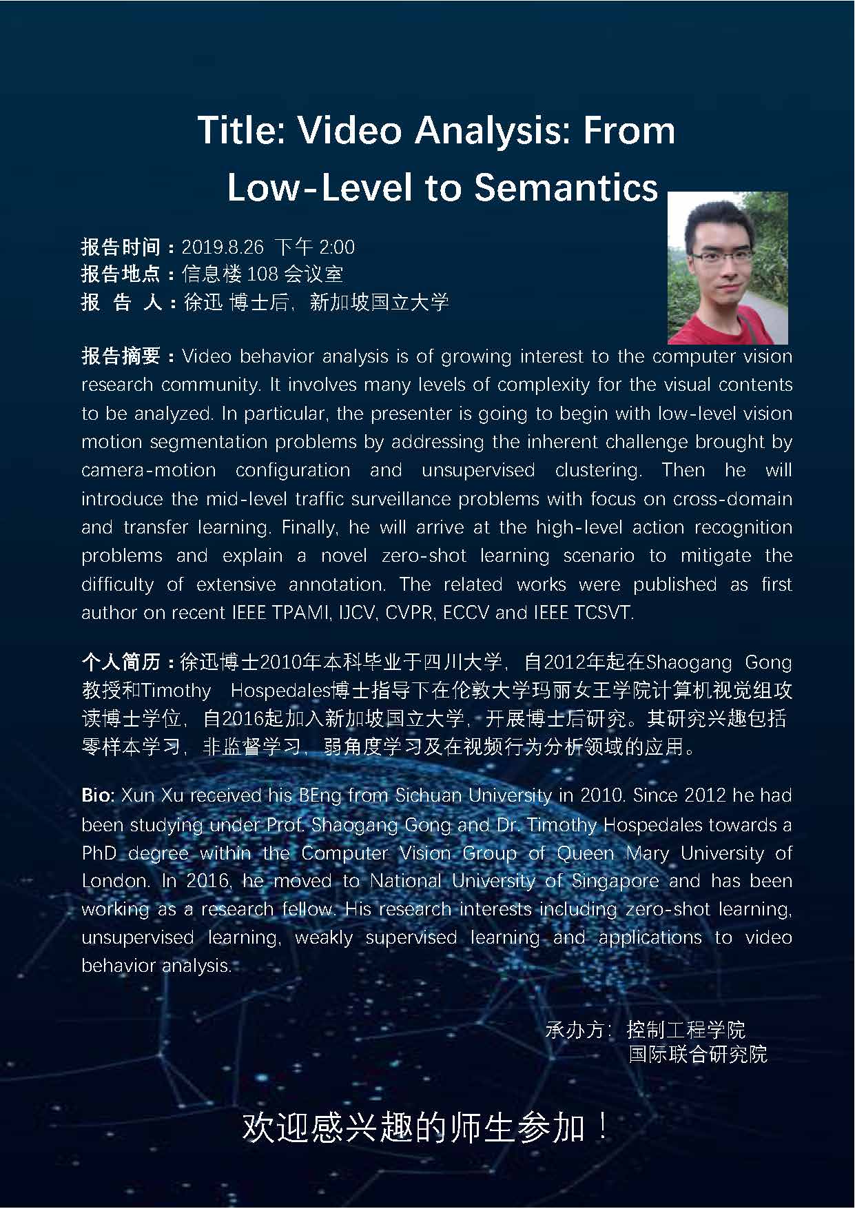 新加坡国立大学博士后徐迅应邀来校做学术报告
