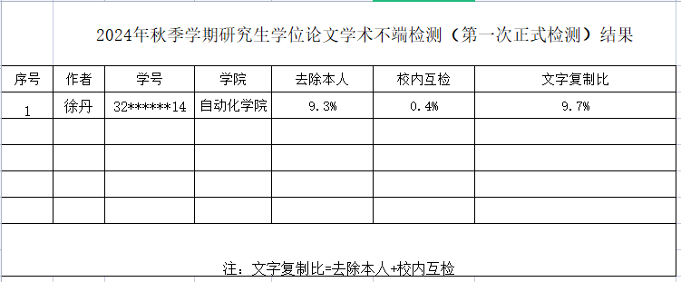 2024年秋季学期研究生学位论文学术不端检测(第一次正式检测)结果
