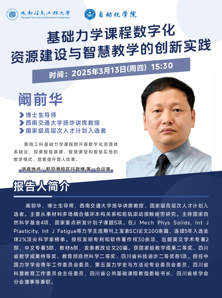 【学术预告】基础力学课程数字化资源建设与智慧教学的创新实践