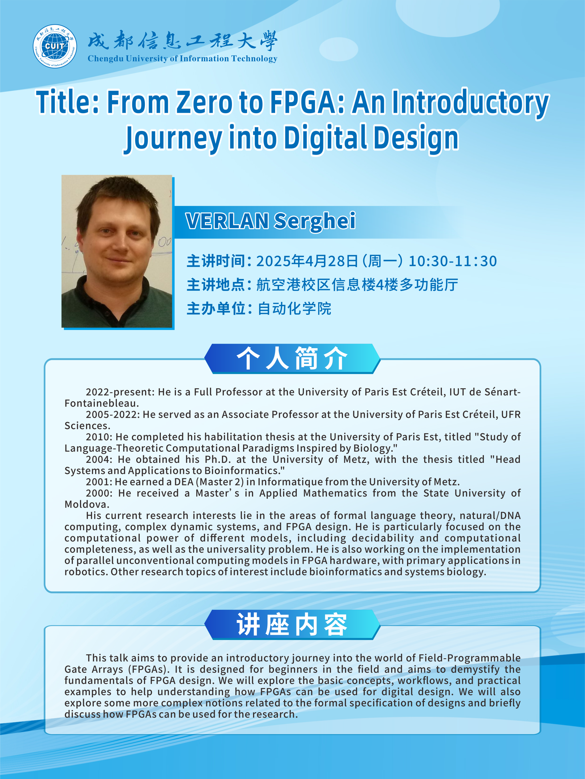 【学术讲座预告】From Zero to FPGA: An Introductory Journey into Digital Design