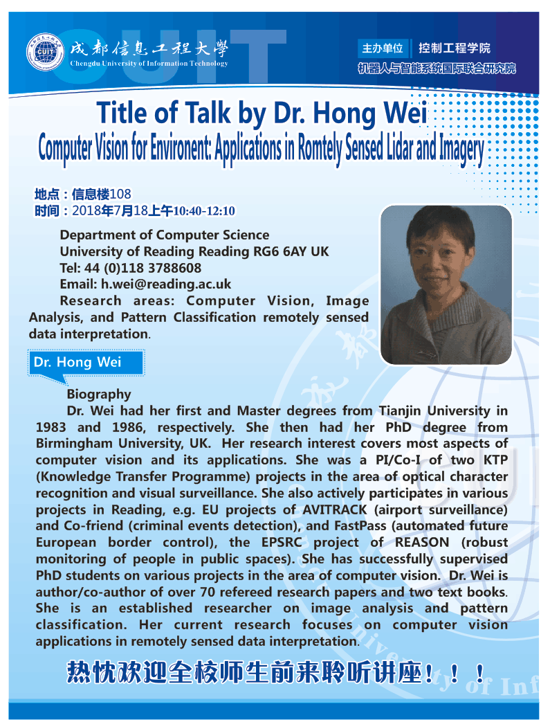 学术预告:Computer Vision for Environent: Applications in Romtely Sensed Lidar and Imagery