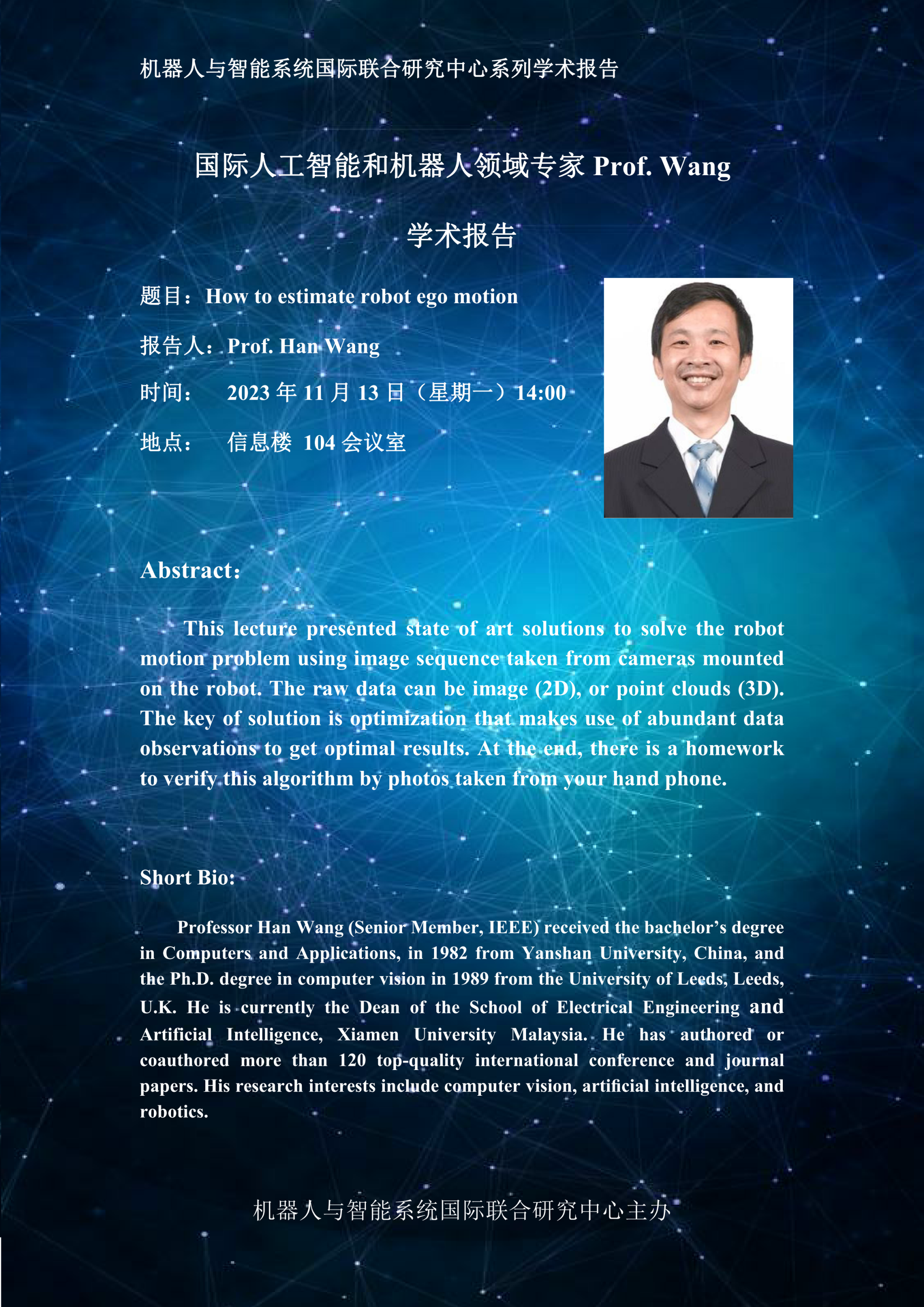 【学术讲座预告】机器人与智能系统国际联合研究中心系列学术报告