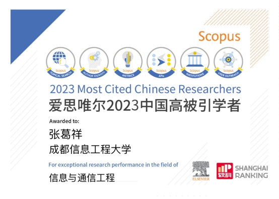 2024年3月27日,爱思唯尔(Elsevier)重磅发布2023“中国高被引学者”(Highly Cited Chinese Researchers)榜单。我校betway88西汉姆联张葛祥教授连续第四次入选。