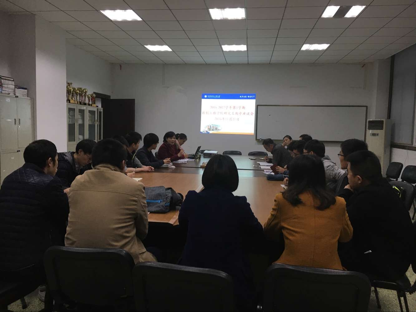为进一步增强师生联系,了解研究生学习进程及效果,加强研究生培养过程管理,控制工程学院于11月21日下午召开了2016-2017学年第一学期研究生期中教学检查师生座谈会。座谈会由主管研究生教育的副院长沈艳主持,学院党总支书记邓丽琴、研究生导师代表、研究生班主任、研究生教学秘书以及全体研究生参加了此次座谈会。
