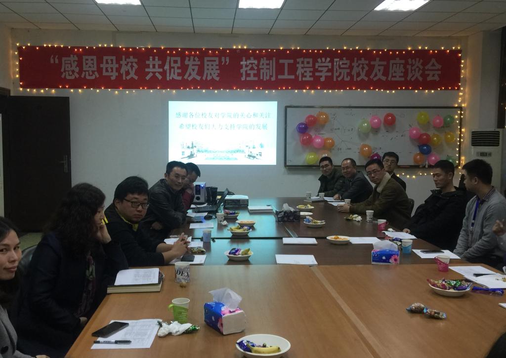为加强校友联系,沟通校友感情,听取校友意见,促进学校发展,以成都信息工程大学四川校友会成立大会为契机,控制工程学院于11月24日下午特别举办了以“感恩母校,共促发展”为主题的校友座谈会,座谈会特别邀请了前控制工程学院副院长、现学校科技处处长朱明以及控制工程学院院长蒋涛、党总支书记邓丽琴、副书记张勇、团委书记田晓旭与杨燕等十余名校友进行了深入、亲切的交流。